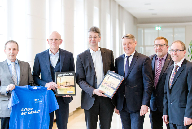 Führende Vertreter der Bayerischen Bauwirtschaft, darunter LIV-Vizepräsident Hermann Lang, haben am 1. Februar 2019 an Kultusminister Michael Piazolo die neue "Lehrermappe der Bayerischen Bauwirtschaft" übergeben.