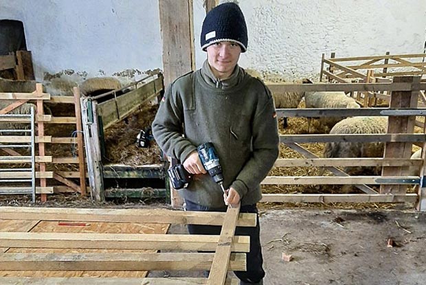 Mit den eigenen Händen etwas schaffen: Hier arbeitet BGJ-Zimmerer Maxi Kirr an einer Abtrennung für Schafe, die gerade gelammt haben.