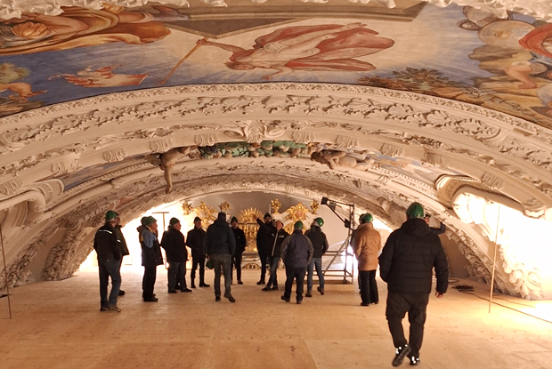 Jedes Jahr am 28. Dezember trifft sich der Prüfungsausschuss der Zimmerer-Innung Oberland. Am 28.12.2024 war es wieder soweit: Auf dem Programm stand eine Besichtigung der durch den Hagel 2023 schwer beschädigten Basilika im Kloster Benediktbeuern.