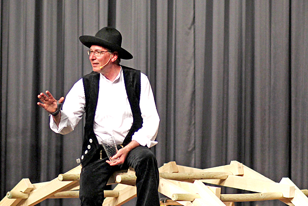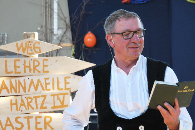 "Finde dich heraus, und du erfindest dich selbst" - Dieser Spruch kommt im Theaterstück "Mit Herz und Hand" des Zimmermeisters Richard Betz vor. Er passt zu ihm, der seine Bestimmung als Zimmerer gefunden hat. Diese Begeisterung vermittelte er an die Schüler der Mittelschule in Steingaden.