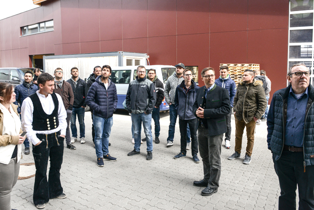 Holzbaujunioren: Das sind die angehenden Inhaber von Holzbaubetrieben. Am 27. März 2019 haben sie die Innungsbetriebe Holzbau Vorholz Hawran GmbH und die Jakob Bscheider Zimmerei GmbH in Oberbayern besichtigt.