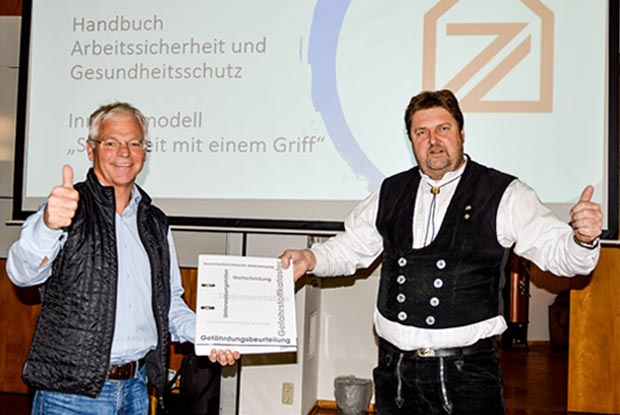 Für die Sicherheit im Betrieb ist die Firmenleitung verantwortlich, das ist gesetzlich festgeschrieben. Deshalb braucht es ein System, um die Flut der Regeln zu managen. Als Lösung wurde der Ordner „Sicherheit mit einem Griff“ erarbeitet. Diesen hat Gerd Renz, der neu gewählte Präsident von Holzbau Baden-Württemberg, am 14. Oktober 2020 im Aus- und Fortbildungszentrum Mühlbach vorgestellt.